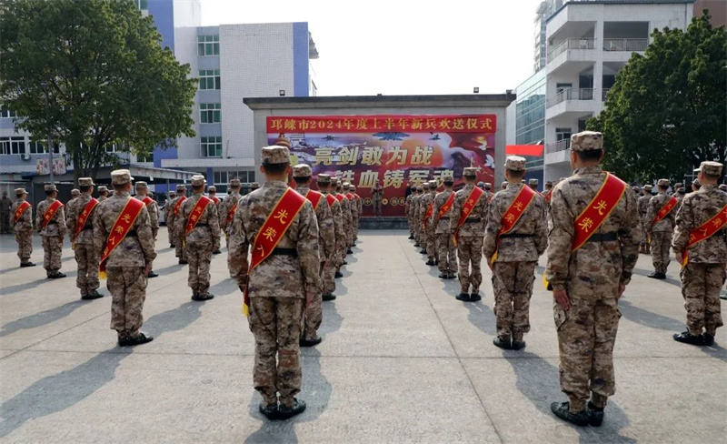 3月15日,邛崃市2024年上半年新兵入伍欢送仪式在成都市武侯区役前训练基地举行,我市60名优秀青年身穿迷彩,满怀雄心壮志,奔赴火热军营。
