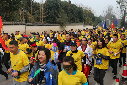 作为一项高负荷大强度的竞技体育,马拉松赛比拼耐力与韧劲,而南丝路·邛崃半程马拉松赛意义更多的则是展示地方特色文化魅力。从赛道到观众,从主办方设计的情侣领跑到文君相如与跑者互动,无不为跑者营造出一种欢乐喜庆迎新年的氛围。