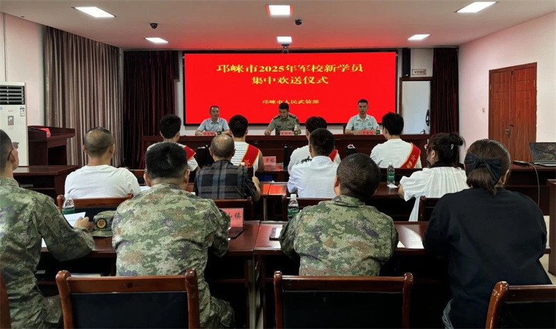 8月12日,邛崃市人武部会同市退役军人事务局为4名录取军校学员举行欢送仪式,为即将踏上军旅新征程的优秀青年学子壮行。市人武部部长史增辉、市退役军人事务局相关负责同志与新学员及家长齐聚一堂,共叙鱼水深情,畅谈军旅梦想。