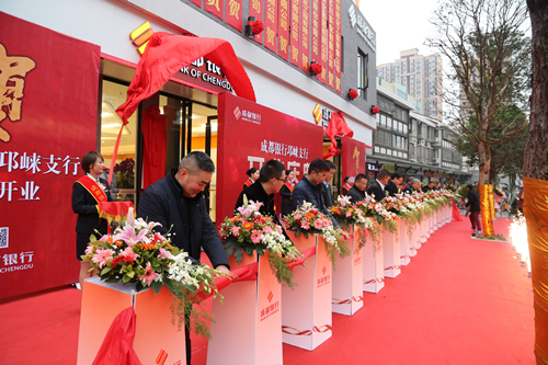 12月26日上午,成都银行邛崃支行正式搬迁至大北街城门楼左侧。中国人民银行邛崃市支行行长郑敏、中国银行业监督管理委员会四川监管局邛崃办事处主任王子文共同为成都银行邛崃支行揭幕,个人客户代表、企业客户代表为成都银行邛崃支行新址乔迁剪彩。