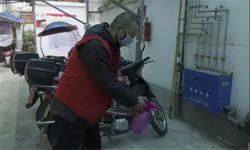 拿水壶正在消毒的老人叫王烨平,是文昌宫社区某院落有着32年党龄的小组长,他每天的主要任务是对该院落进行消毒,他一天上下楼跑60多趟,行走10000多步...