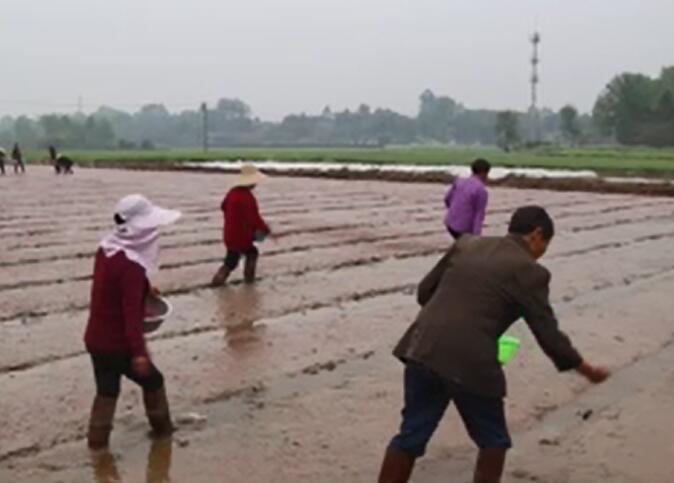 早上8时许,向阳村整理出的田块上已经有工人在撒种,红色种子一旦播种下,就要立即进行喷洒除草药剂和覆膜作业。浸种、秧田填挖、秧田开箱、催芽、拌药、播种、秧田盖薄膜,诸多工序需要一气呵成,常言道春种一粒粟,秋成万颗子,正是精心呵护、打好基础,秧苗才能茁壮成长。