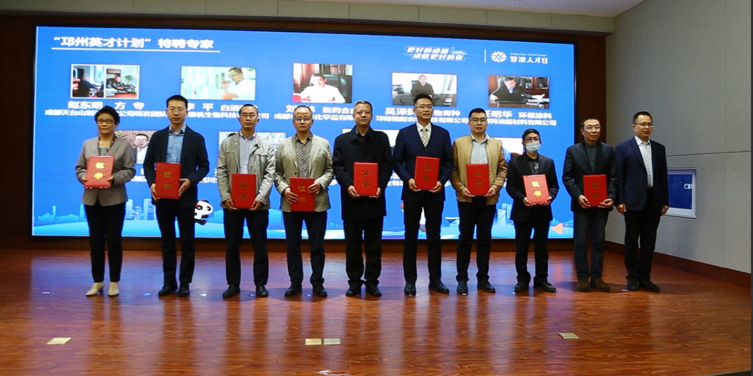 人才聚则产业兴,在成都市建设全面体现新发展理念城市的进程中,我市围绕建设成都西部区域中心城市目标,聚焦产业发展,布局人才“引育留用”相关工作,通过“邛州英才计划”引进培育了一批技术研发专家人才和团队,通过“崃山工匠”制度培育出了一批优秀技能人才。当天会上,市委组织部和市总工会为“邛州英才计划”入选者和“崃山工匠”获得者颁发了专家聘书和荣誉证书。