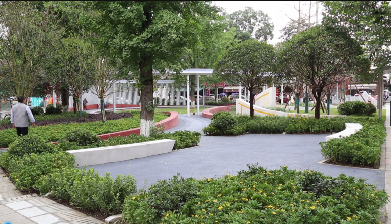青翠的树木、整齐的草坪、浓厚的文化……在繁华的城市里延展出一幅诗意自然图画。眼下,较场园口袋公园呈现在眼前,成为繁华闹区中的静谧之地和居民纳凉聊天、健身休闲、文娱活动的好场所,带给人们满满的获得感和幸福感。