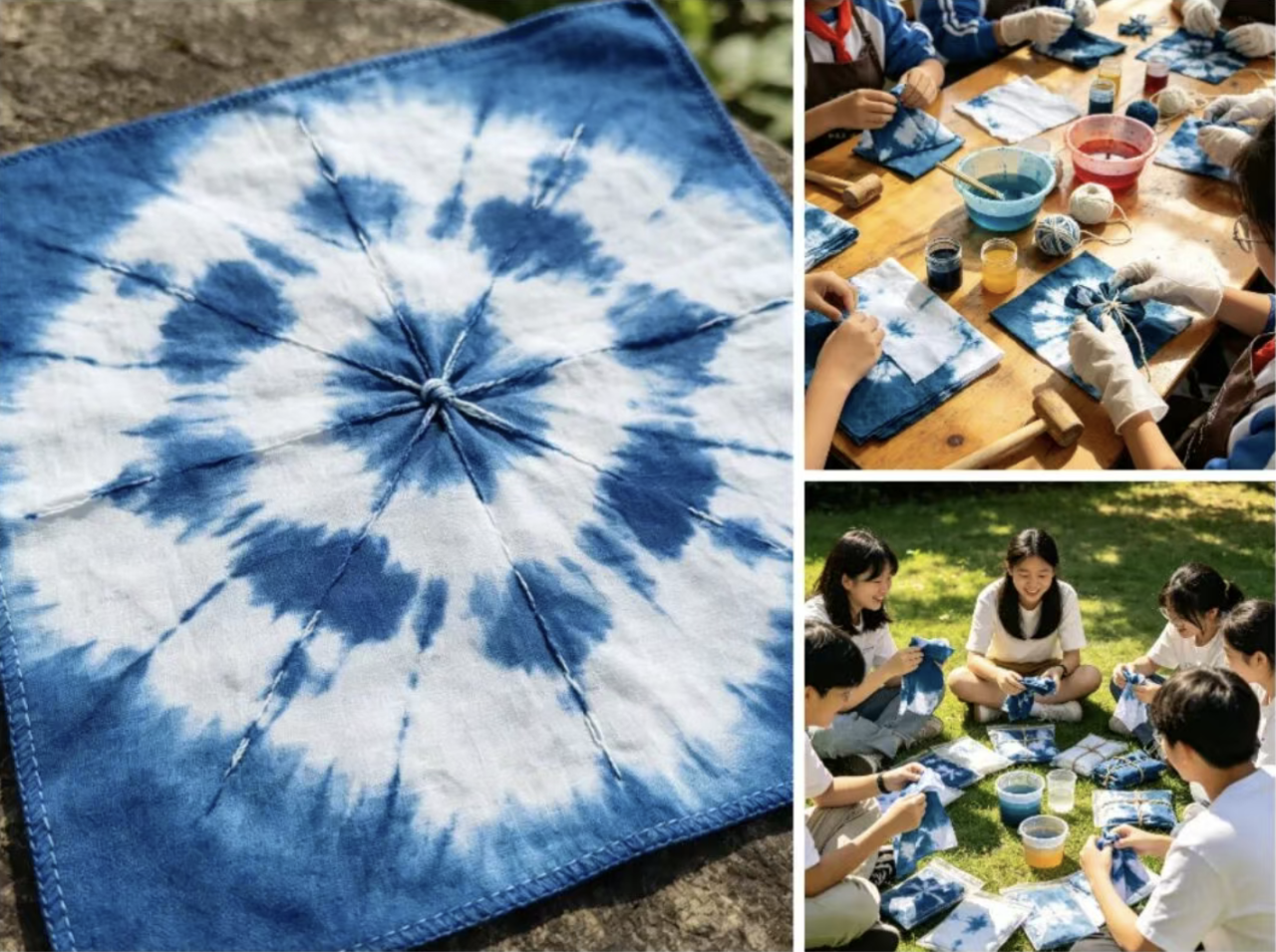 古法扎染用捆扎、折叠、夹染等方式,让布料呈现出自然流动的纹理,每一块布料的图案都是不可复制的“孤品”。孩子将学习扎染基础技法,看着白布慢慢晕染出蓝白相间的花纹,感受自然与手工碰撞的惊喜。