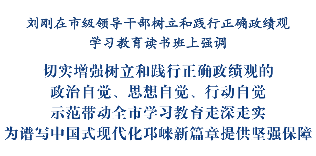 3月31日至4月2日,市级领导干部树立和践行正确政绩观学习教育读书班举行,市委书记刘刚作开班动员和结业讲话。他强调,要深入学习习近平总书记关于树立和践行正确政绩观的重要论述,认真落实党中央和省委、成都市委部署要求,切实增强树立和践行正确政绩观的政治自觉、思想自觉、行动自觉,示范带动全市学习教育走深走实,为谱写中国式现代化邛崃新篇章提供坚强保障。