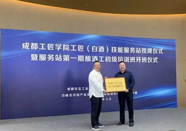 随后,成都市劳动和技能竞赛服务中心主任罗晨为成都工匠学院工匠(白酒)技能服务站正式授牌。
