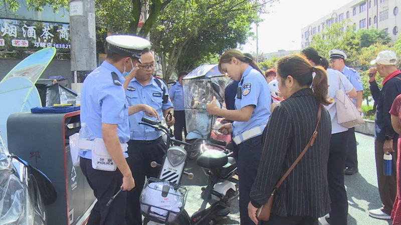 为清除道路交通隐患,预防和减少交通事故,8月27日,我市公安局交警大队联合中国人寿保险公司邛崃分公司开展电动车非法加装车篷专项整治。