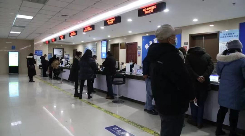 上午9点,前来办事的人络绎不绝。大厅入口处群众有序出示健康码,配合工作人员测温后进入大厅办理业务。