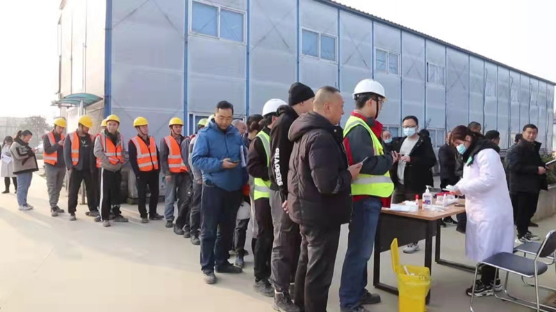 2月15日上午9点,记者来到我市绿色食品产业功能区内的水井坊项目在建工地。由园区管委会组织的医务队来到这里,为项目内的工作人员进行免费核酸检测。