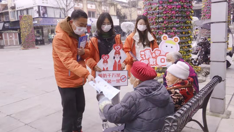 据了解,本轮成都市疫情发生以来,团市委及新时代文明实践中心的50余位志愿者闻讯而动,立即到岗,每天早上9点到下午5点,他们顶着寒冷的天气,奔走在大街小巷,主动担当起了防疫宣传员、劝导员、监督员。