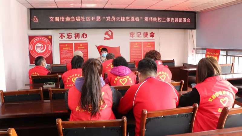 3月1日,记者在渔唱社区便民服务中心看到,社区正在召开“党员先锋志愿者”疫情防控工作安排部署会。许多穿着红色马甲的党员志愿者正在与社区书记交流疫情防控工作,今天他们的工作任务是到辖区各小区和商铺发放宣传资料,巡查防疫工作落实情况。