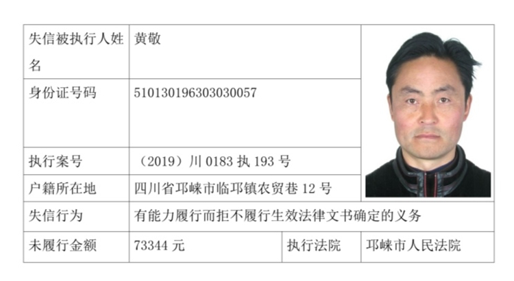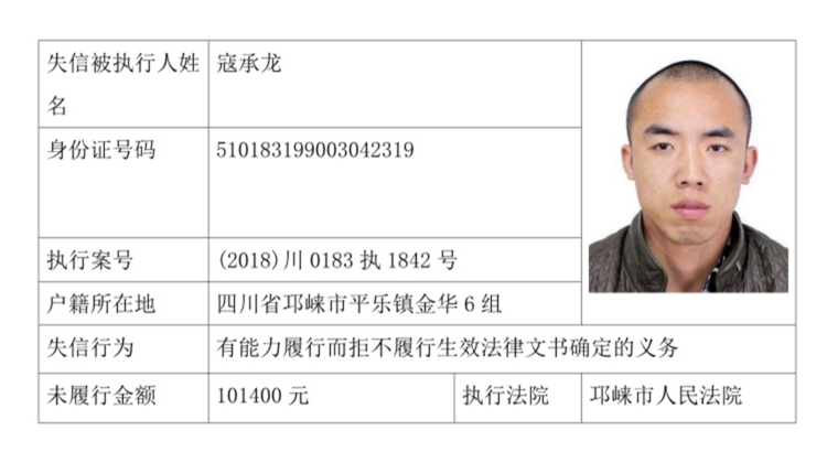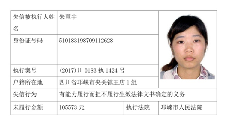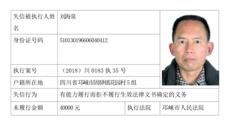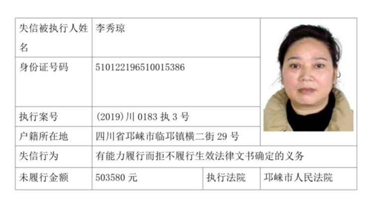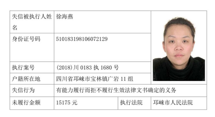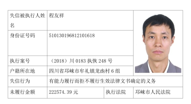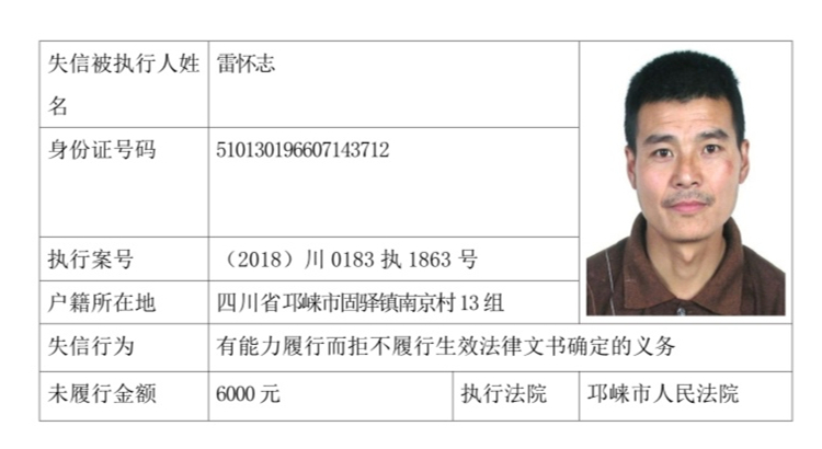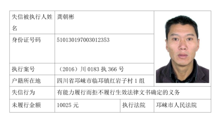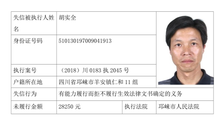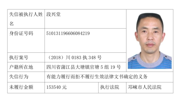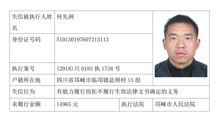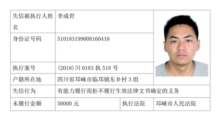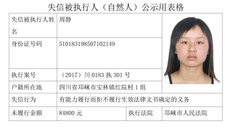 失信被执行人(自然人)公示