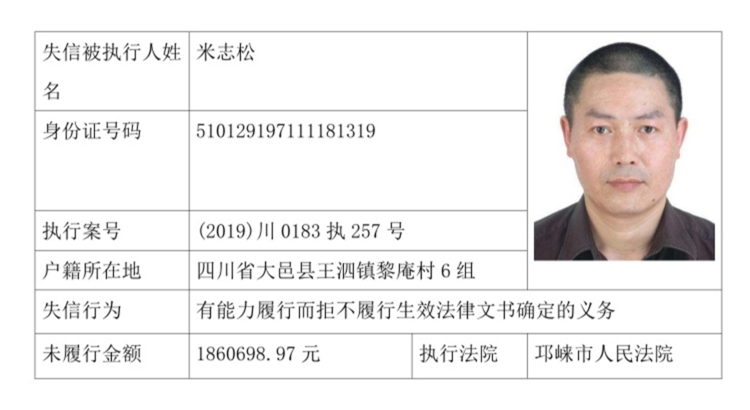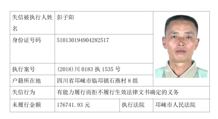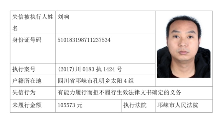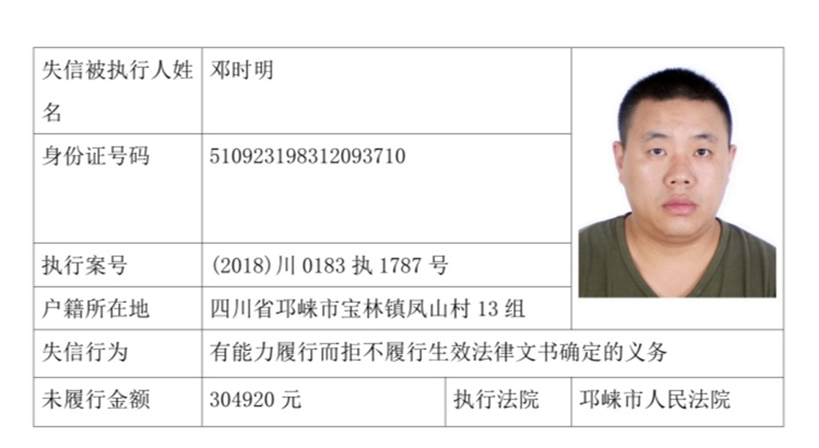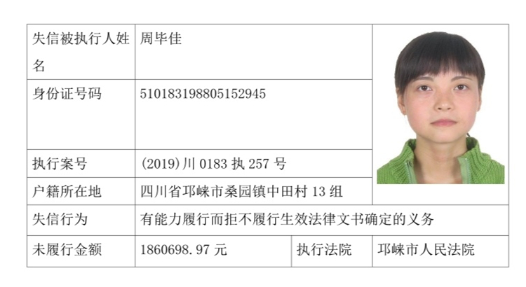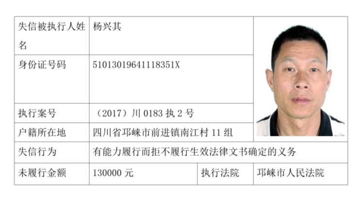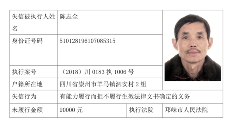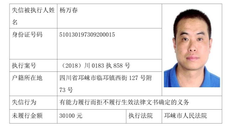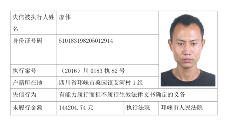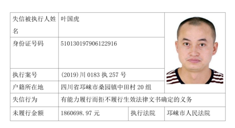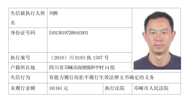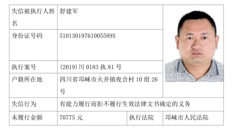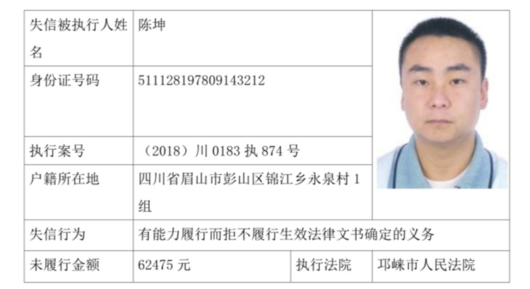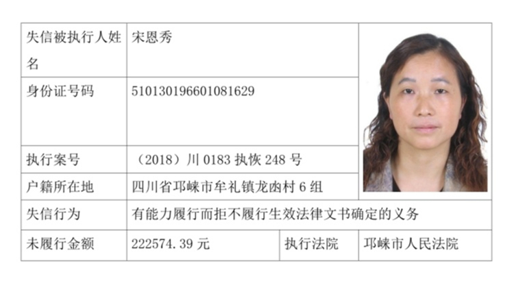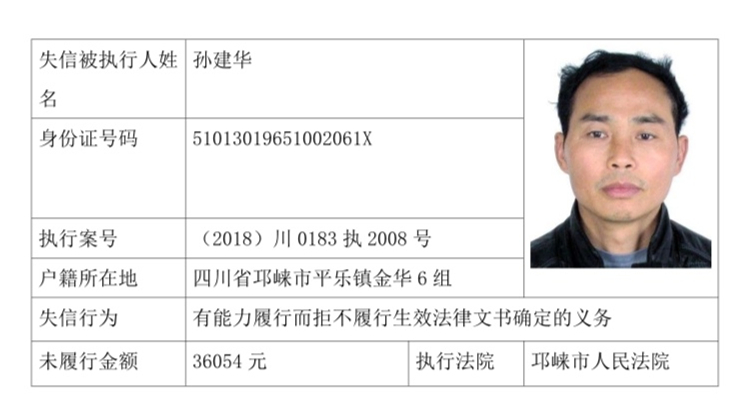 失信被执行人(自然人)公示