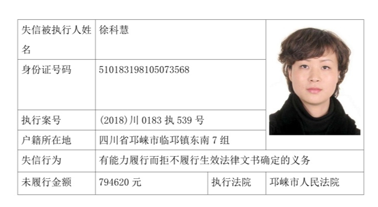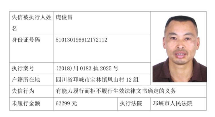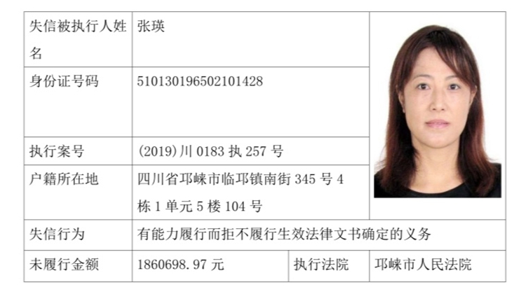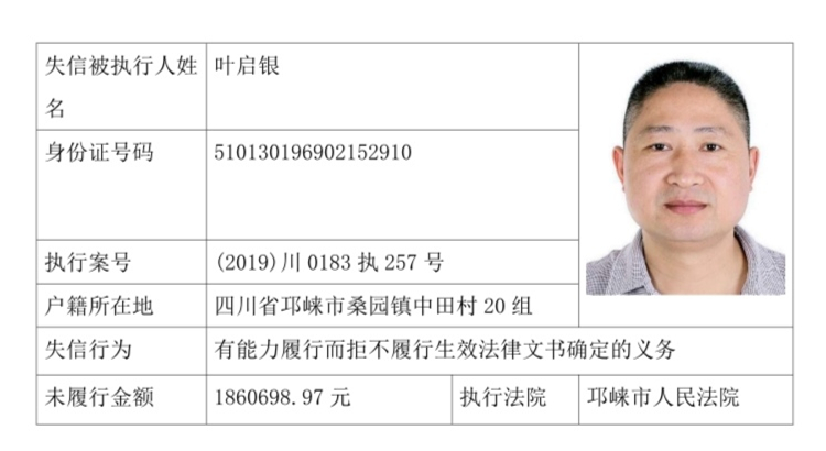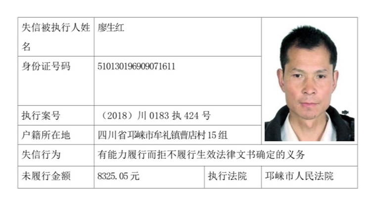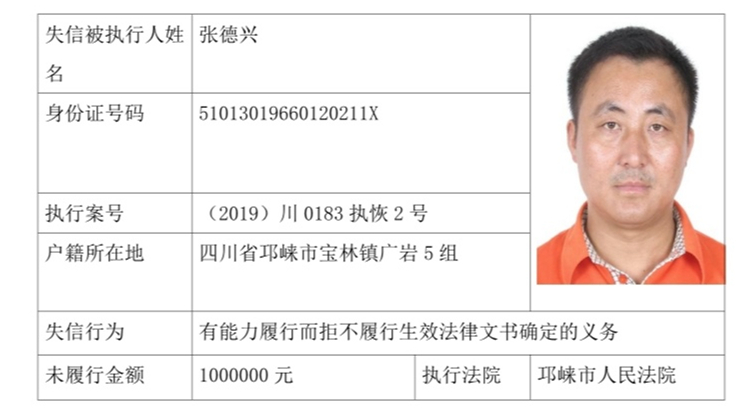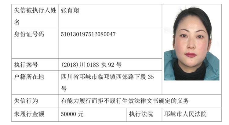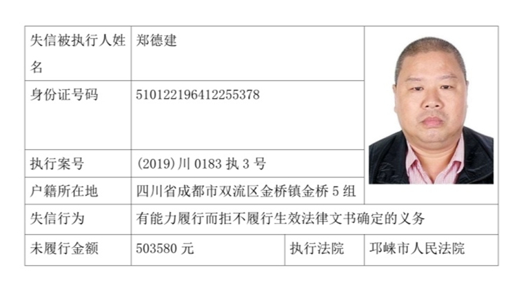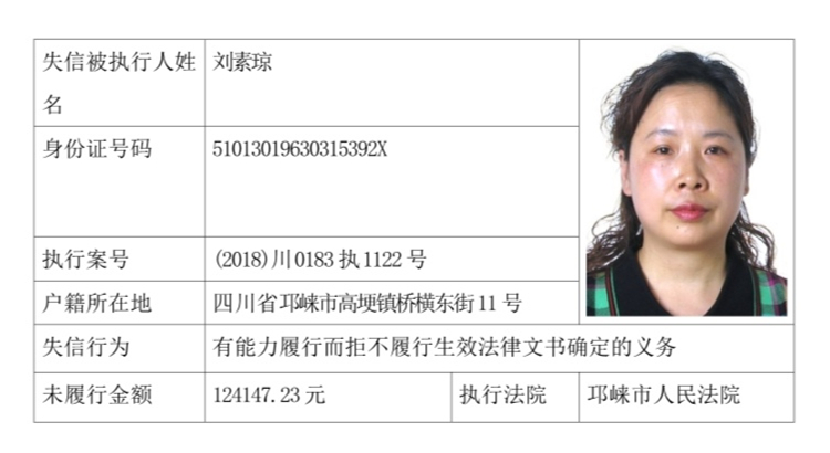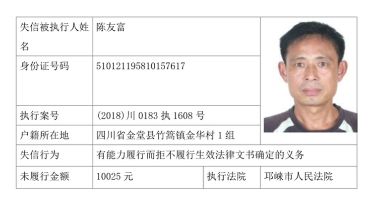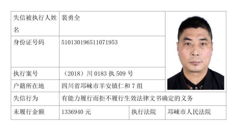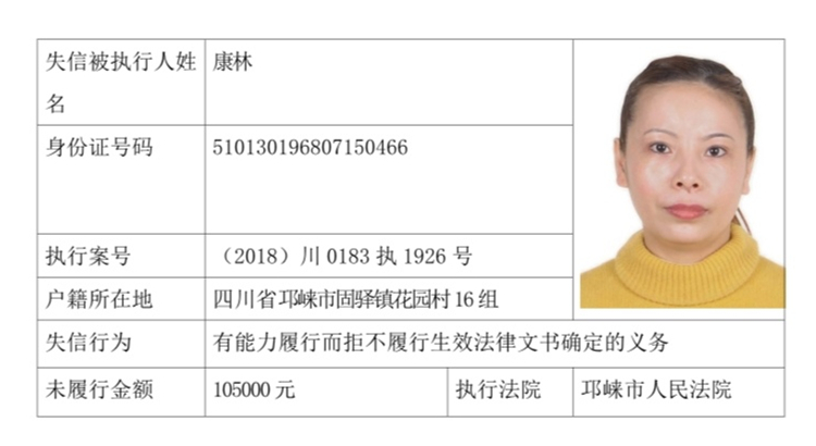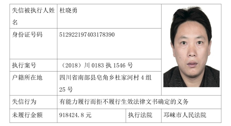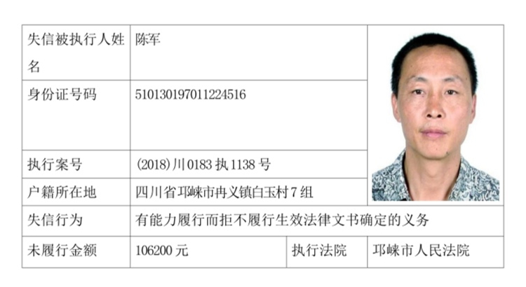 失信被执行人(自然人)公示