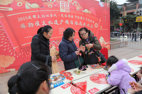 同时,成都市文化馆、成都市文化志愿者协会还开展了各种文化志愿服务活动,包括免费向群众赠送年画、春联,灯谜有奖竞猜等;组织国家级、省级、成都市级非物质文化遗产代表性项目,开展活态展示,让市民领略非遗魅力。