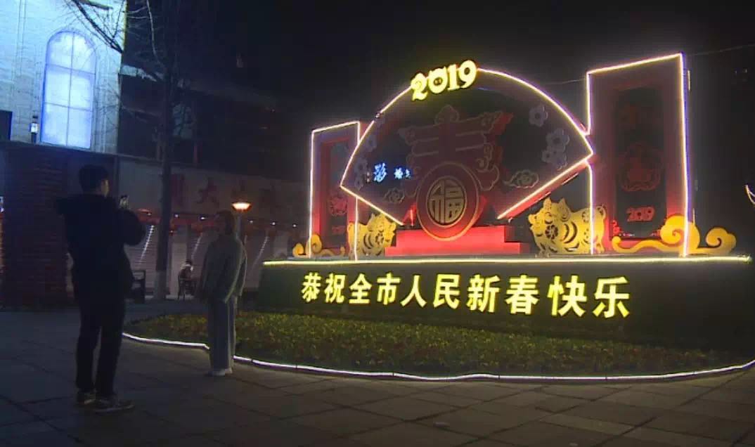 当天,记者在凤凰大道、学子路等城区主要街道看到两旁的路灯上都悬挂了红灯笼;在五彩广场旁,周边的圆石墩已经披上了新衣,被统一喷成了乳白色,并在上面画上了代表汉文化的图案;在鼓楼小广场,一个由各色鲜花组成的大型立体花坛格外显眼,上面配有恭贺新春、猪年等图案都在营造浓浓的节日喜庆气氛。