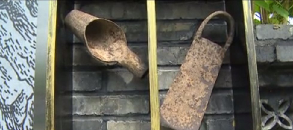 最后,我们向大家介绍的老物件便是洁白的桌布上这两把充满铁锈的刀,2把刀一大一小,与农村常见的砍刀相似,但更加小巧,这两把刀来自铁花社区居民周琳,几十年前,铁花社区每家每户都有2把这样的刀。