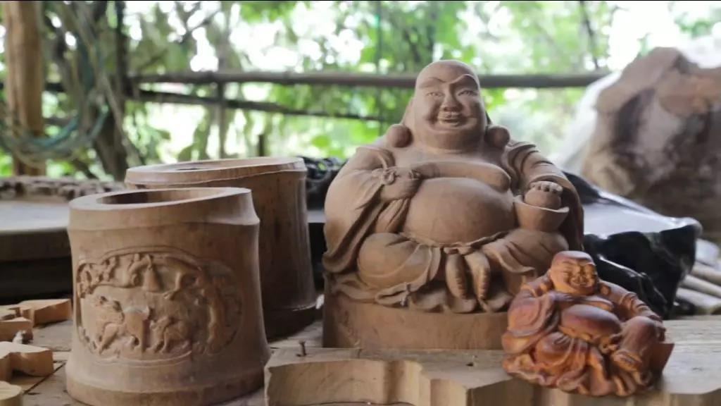 茶盘、拐杖、笔筒、佛像……这些木雕作品不是哪位艺术家创作的,而是出自临济镇郑航村一位普普通通的农民之手。在他的巧手雕琢下,普通的木头变成了栩栩如生的花草、瓜果、动物,具有浓厚的乡土气息。