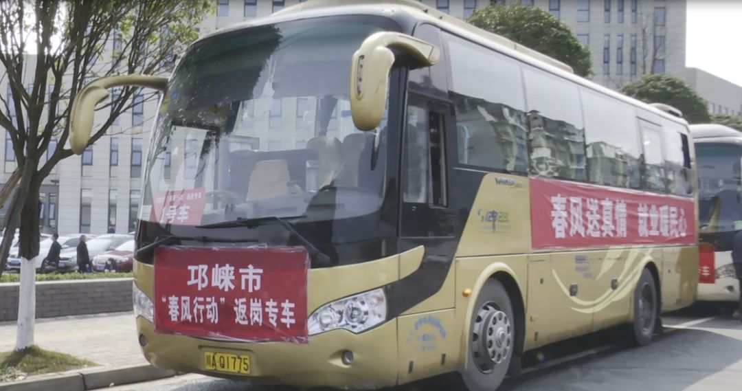 2月24日下午,我市即将前往浙江嘉兴的70名返岗复工外出务工人员,登上了我市“春风行动”返岗专车,分散就座。专车将把他们送往成都车站,登上浙江嘉兴派来的专车。