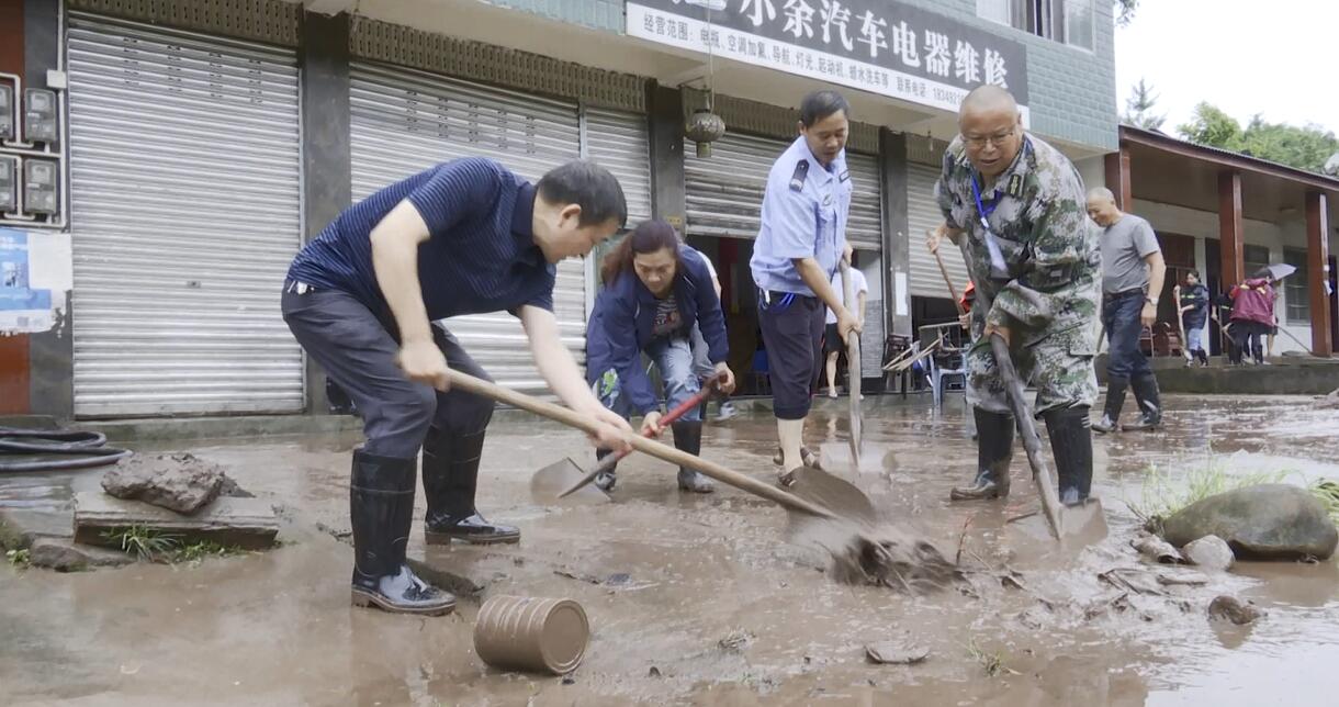 记者离开时,王国惠和熊恩建仍在社区内查看整理汛情资料,而当地志愿者、民兵和政府工作人员也在继续清理道路淤泥……