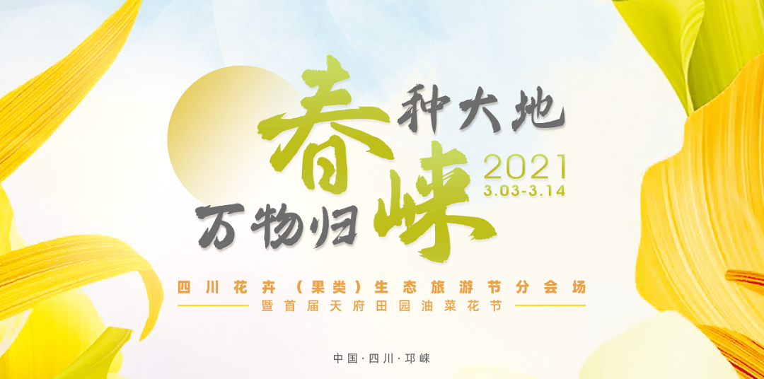 在这春回大地之际,由邛崃市人民政府主办,市农业农村局、崃岭集团承办的2021四川(花卉)果类生态旅游节分会场暨首届天府田园油菜花节将于2021年3月3日-14日在成都天府现代种业园举行。