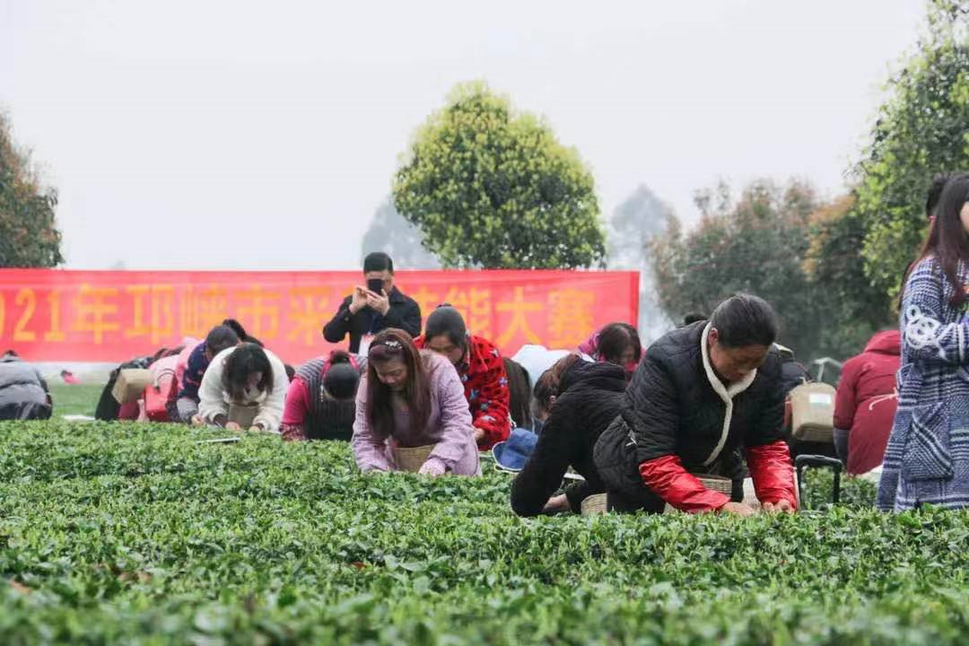 3月8日,由邛崃市总工会、四川省文君茶业有限公司、邛崃市乡绿源种植专业合作社联合主办的2021年采茶技能大赛在孔明街道文君茶业公园隆重举行。