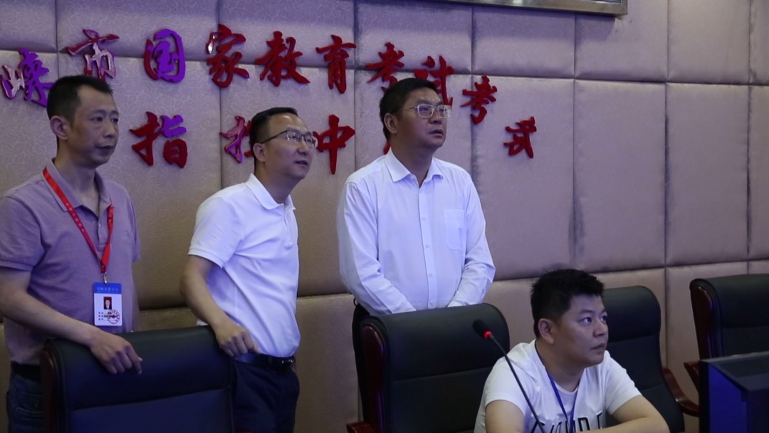 当天上午,副市长秦俊宁以及相关部门负责人值守在邛崃市国家教育考试指挥中心,对各考点进行视频巡视,实时观看考场周边以及考场内现场画面,随时做好突发事件的预防和应急处理工作。