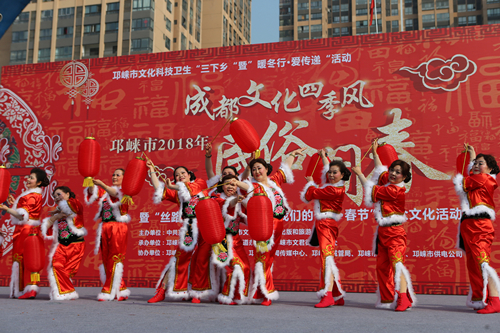 大年三十,2018 “成都文化四季风•民俗闹春”暨“丝路山水 醉美邛崃—我们的节日•春节”群众文化活动在文君广场举行。
