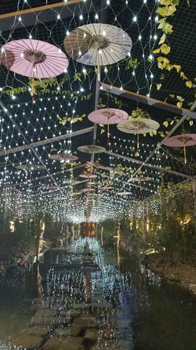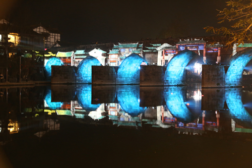 据介绍,南丝路3D灯光秀首期工程以乐善桥为中心,集古树、流水、竹筏和川西民居于一体,现场运用声、光、电数字手法,实景演绎醉美邛崃悠久的历史文化和秀美的自然风光、丝路山水的绝代芳华,活动将持续到正月十五。