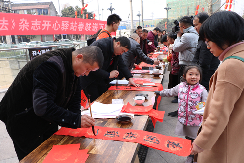 2月13日,由四川美术出版社《爱书法》杂志、开心驿站组织开展的春联送万家活动在三洲盛景广场举行。