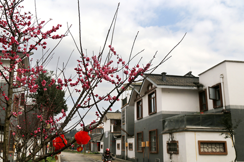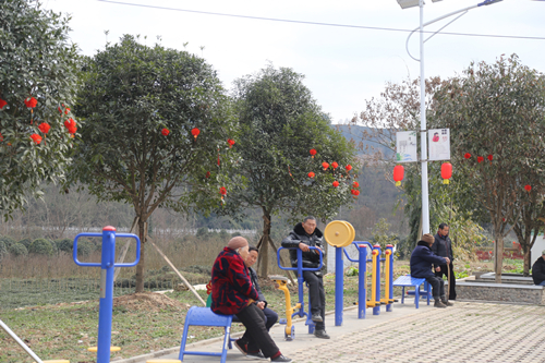 大雾散去,阳光洒向村庄。夹关镇王店社区居民集中安置小区的广场上,孩童嬉戏追逐,大人围堆谈笑。村里的保洁员黄家秀拎着一串大红灯笼走来,立刻吸引孩子围着她打转。“挂起来,挂起来,大家都能看。”她一边招呼着,一边把灯笼逐个递给脚手架上的工人。不一会儿,广场四周的桂花树上,已是红红火火一派喜庆景象。