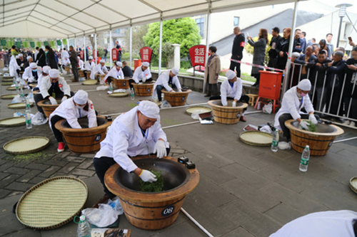 4月2日,“建功新时代·追梦新天府”2019成都百万职工技能大赛手工制茶比赛暨第九届成都(邛崃)采茶节手工制茶邀请赛,在夹关镇黑茶广场开幕。