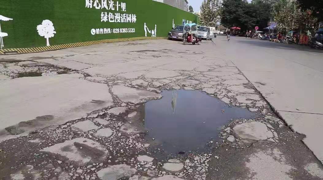 在永丰路与北坛街交汇路口,记者看到,水泥路面坑洼不平、破损严重,有的低洼处积满了污水,这样的情况对过往的市民存在着不小的影响。经常路过的市民告诉记者,这段坑洼路面出现已经很久了。