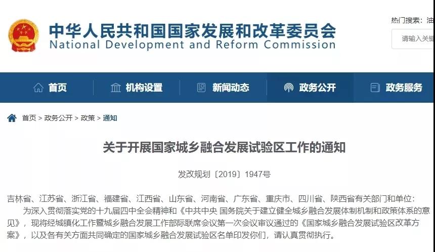 近日,国家发展改革委下发通知,公布11个国家城乡融合发展试验区名单,四川成都西部片区8区市县入选!