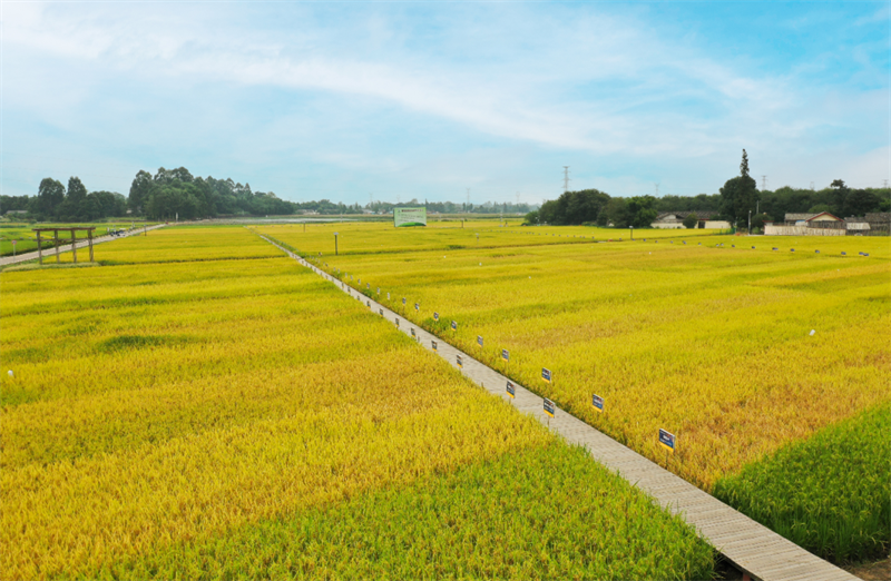 金灿灿的稻子一眼望不到头,玉米、大豆颗颗饱满,茄子、冬瓜等各色瓜果挂满枝头,处处呈现一派丰收景象。九月的天府现代种业园,秋光正好,生机勃勃,走进广阔田野,各类新优品种随处可见。