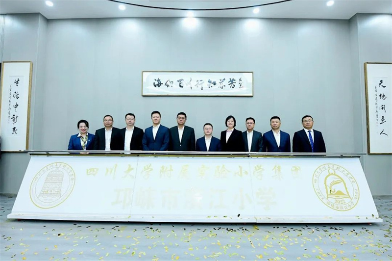 在现场来宾的共同见证下,“四川大学附属实验小学集团邛崃市滨江小学”校名正式揭幕。