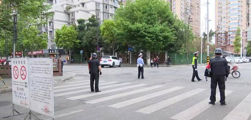 在距校门100米的交通卡口处,市公安局交警大队民警进行道路交通疏导和路面巡查管控,营造安全畅通的道路交通环境。据悉,每天上学和下午放学时段,都有专门的警力维持现场交通秩序。