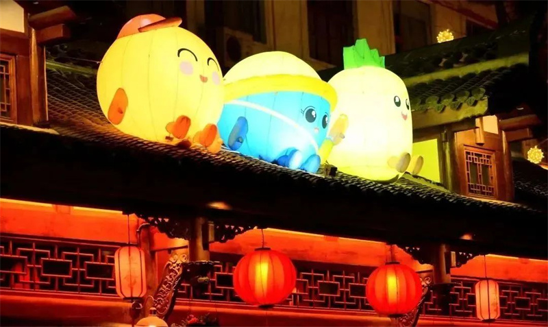 伴随着临邛古城灯会的来临,一个个或可爱或喜庆或充满艺术创意的彩灯组在兴贤街被点亮,为古城增添了一种别样的节日趣味……