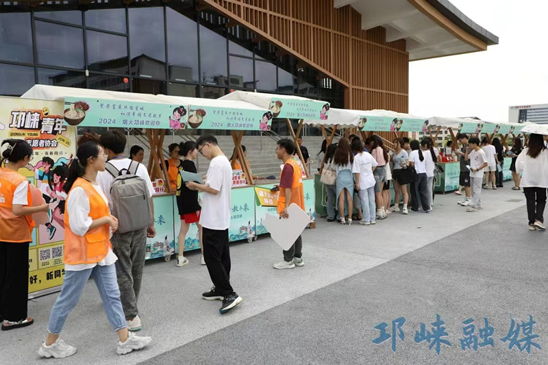 一大早,工作人员已准备就绪,校园内不仅设置了农特产品展位,展示邛崃本地的优质农产品、特色美食及手工艺品等,还设置了志愿服务展位,为过往师生赠送“迎新大礼包”,创意迎新互动,成功吸引一波又一波的高校师生。