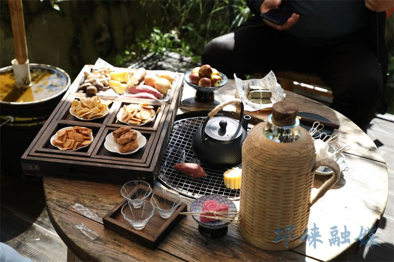在大林茶事,当地村民正围坐品茗,商讨村务;在文创展区,游客们对以女状元黄崇嘏为原型设计的文创产品表现出浓厚兴趣;而在临江的露天茶座,早来的客人已经占据了最佳观景位置,享受着围炉煮茶的悠闲时光。