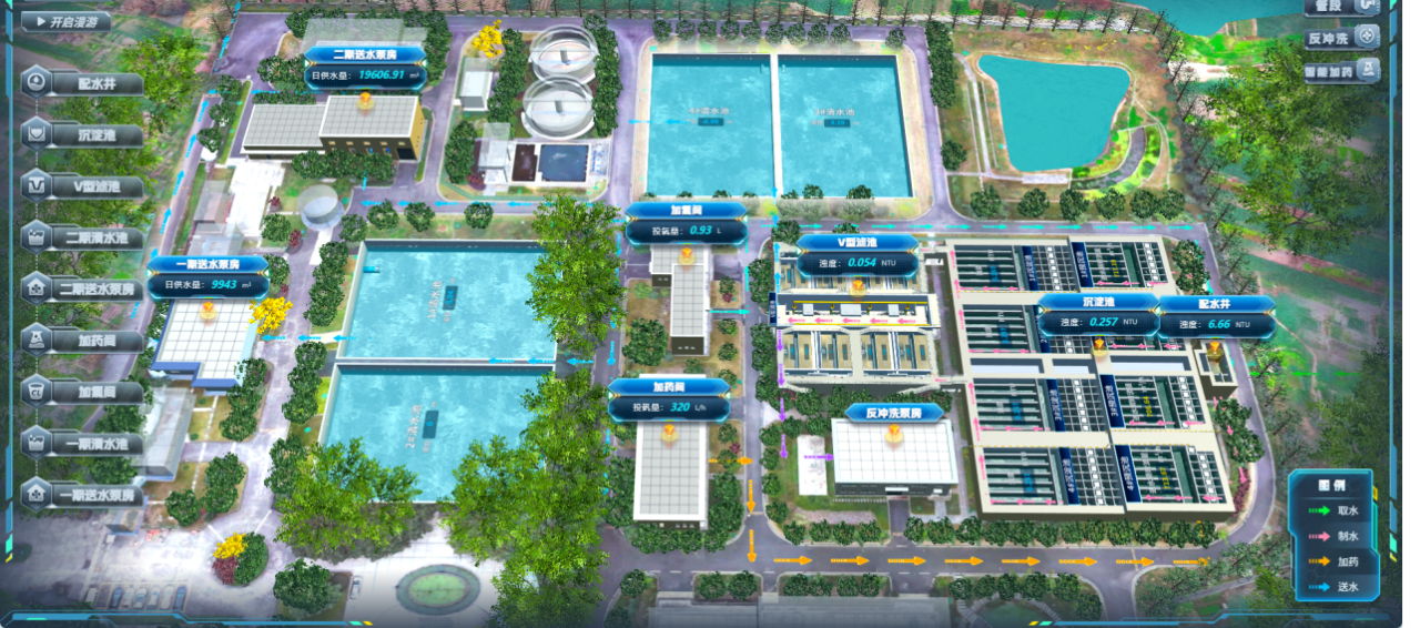 推动临邛城乡供水片区打造“数字孪生与人工智能”供水应用场景示范,建成数字孪生水厂一座,配套174个智能化管网感知设备、501个智能消火栓等设施,构建起“源-厂-站-网-户”数智化综合管理平台,实现人工智能加药、自动探漏、一键派单等功能,全流程智能管控城乡供水。