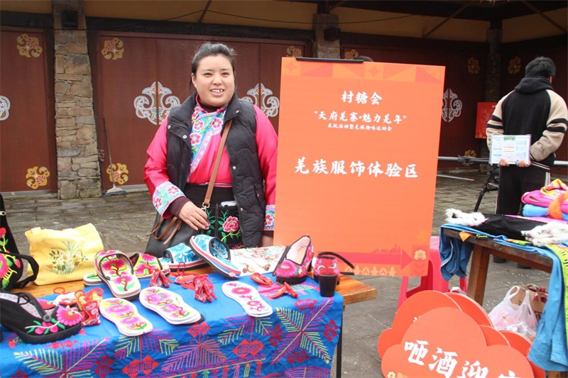 “我们深挖非遗资源,以文化赋能文旅发展,让村民共享发展红利。” 南宝山镇相关负责人介绍,当地深挖7项非遗资源,打造“羌寨物语情景宴”核心IP,将洋芋糍粑、咂酒等羌族特色美食,与祭祀演绎、莎朗舞、羊皮鼓舞相结合,搭配60米羌绣长卷,让游客沉浸式感受羌族文化的深层内涵。同时整合高山生态优势,推出蓝莓采摘、秘境徒步、非遗体验等多元项目,构建起“文化体验+生态观光+农旅休闲” 的文旅供给体系。数据显示,今年南宝山镇已接待游客8万人次,实现旅游收入500余万元,非遗与旅游的融合发展,让村民切实享受到乡村振兴的红利。