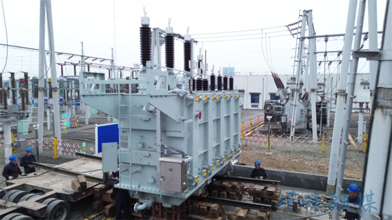 当天,现场工作人员各司其职,指挥、吊装、定位、监测等环节井然有序。在所有人的密切配合下,巨大的主变压器被缓缓吊起,平稳移动,最终精准落入设备基础。整个过程中,技术人员全程使用精密仪器进行监测,确保设备对接“零偏差”。