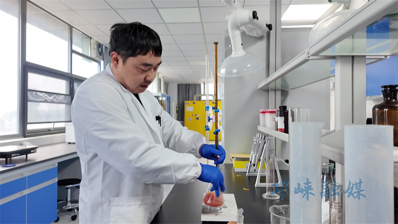 化验人员贺岭聪介绍说,“我正在对餐厨油脂提取出的粗油脂进行酸价检测,这是为了确保我们售卖的油能够达到品质要求。”