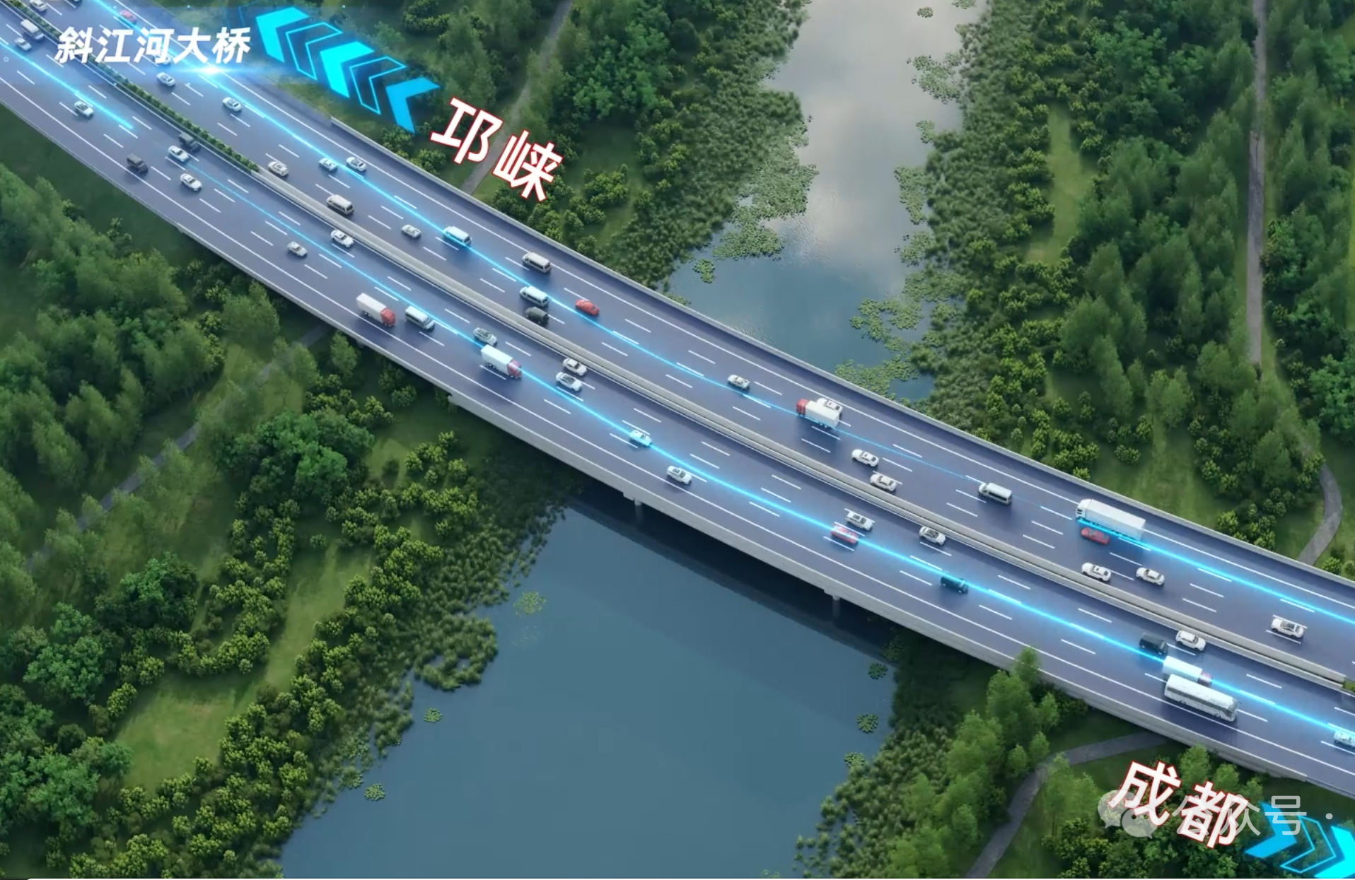 作为成温邛高速扩容项目大邑段重要控制性工程之一,斜江河大桥现有桥梁宽24米、长225米,扩容后将拓宽至41米、延长至249米,实现双向八车道通行,通行能力与行车安全性将大幅增强。