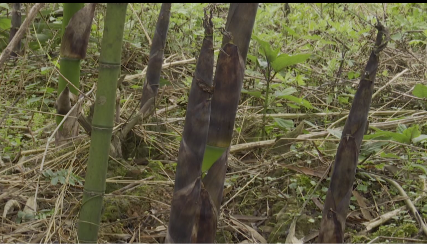 来到石灰桥村,个头硕大的雷竹春笋从地上冒出,一大片长势喜人的雷竹占据了整面山坡。经过3年的精心管护,常刚种植的雷竹春笋终于在今年迎来了第一次的出产销售。