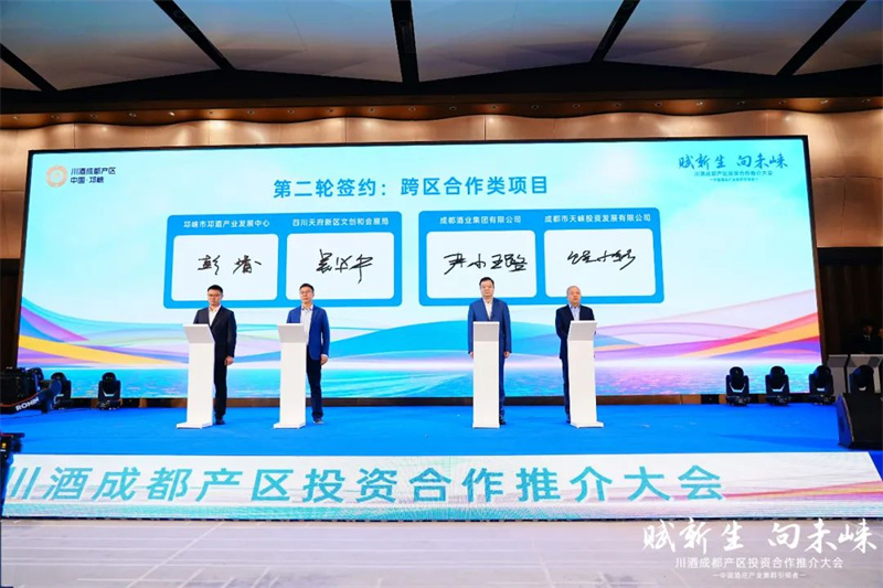 大会还举行了两轮集中签约,上海巴克斯酒业威士忌体验酒店项目,四川原酒集团优质白酒研发及生产基地项目,贵州帝京台酒类研发、生产及灌装基地项目等8个政企合作项目正式在现场签约落户。四川天府新区文创和会展局与邛崃市邛酒产业发展中心,成都市天崃投资发展有限公司与成都酒业集团有限公司分别签订战略合作协议,进一步巩固两地“会展+邛酒”以展促产合作机制。