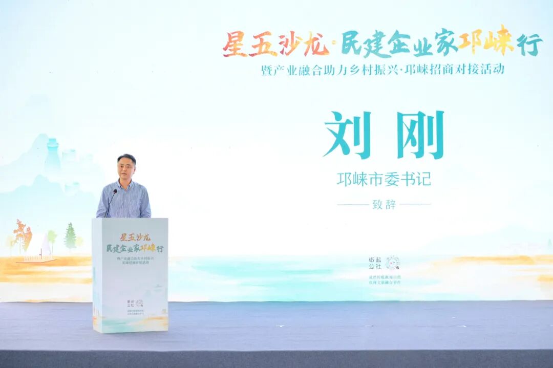 书记刘刚致欢迎词。他表示,本次“星五沙龙”走进邛崃,为共享机遇、共话合作、共赢发展搭建了高端平台。邛崃锚定培育打造成都市域副中心目标,大力建设“近悦远来”的区域文旅消费中心,以文商旅体深度融合发展,促进乡村全面振兴。热忱欢迎广大企业家将创新理念、先进技术和优质项目带到邛崃,在这片充满生机的发展热土上播种希望、成就事业。