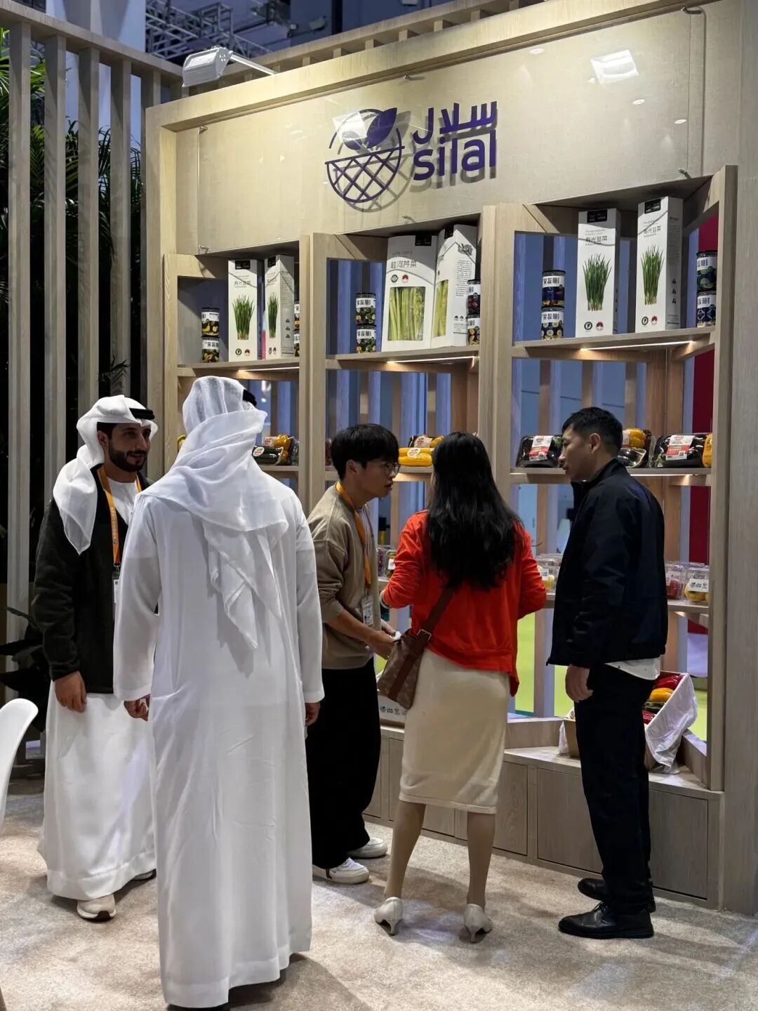 随后,代表团与阿联酋知名农业食品与科技公司Silal进行了会谈。Silal在农业科技创新,尤其是在适应高温气候的作物品种研发方面拥有显著优势。会谈中,聚焦于增加耐热作物种子的供应,并共同探索提升生产种植技术的创新模式,以应对气候变化挑战,保障农产品稳定供应。双方重点探讨了Silal前期在中国已开展的品种筛选、测试及种植试验合作基础上,能够将该合作模式进一步深化,强化与天府现代种业园合作的可能性。
